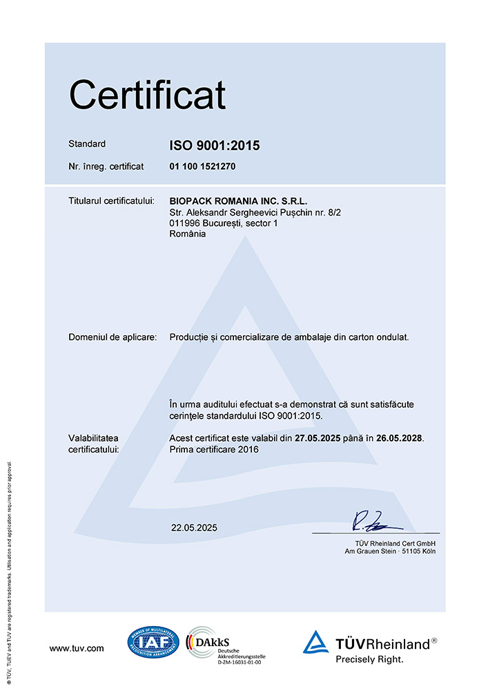 BIOPACK este una dintre companiile de top din industria cartonului ondulat și a ambalajelor din carton ondulat din România, având o experiență de peste 15 ani în domeniu.